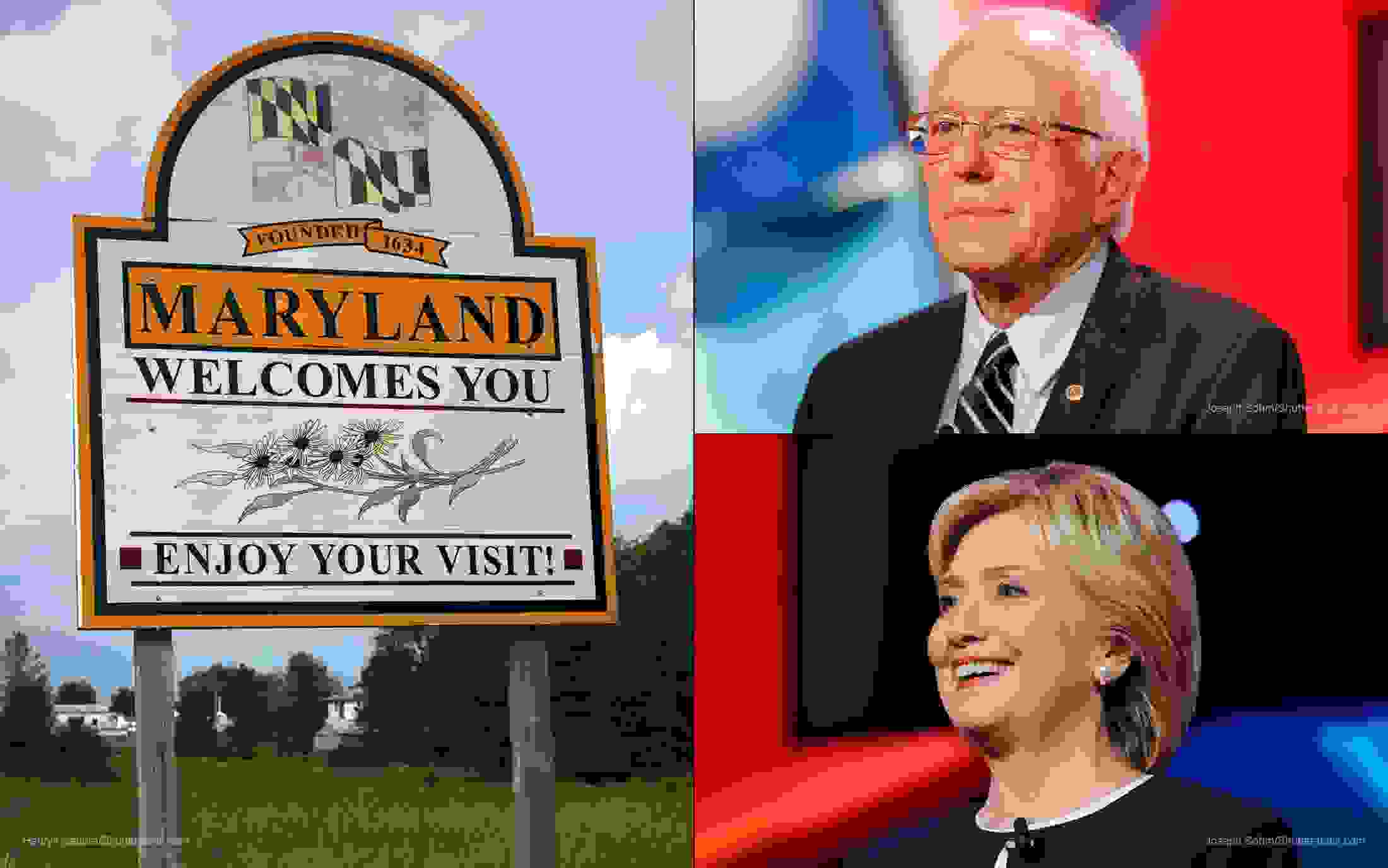 Maryland voted for a Democratic presidential candidate in the last six elections, so despite having a Republican governor, it's not too shocking that two Democrats tied for first in this poll. Clinton and Sanders edged out Trump, who took third.
